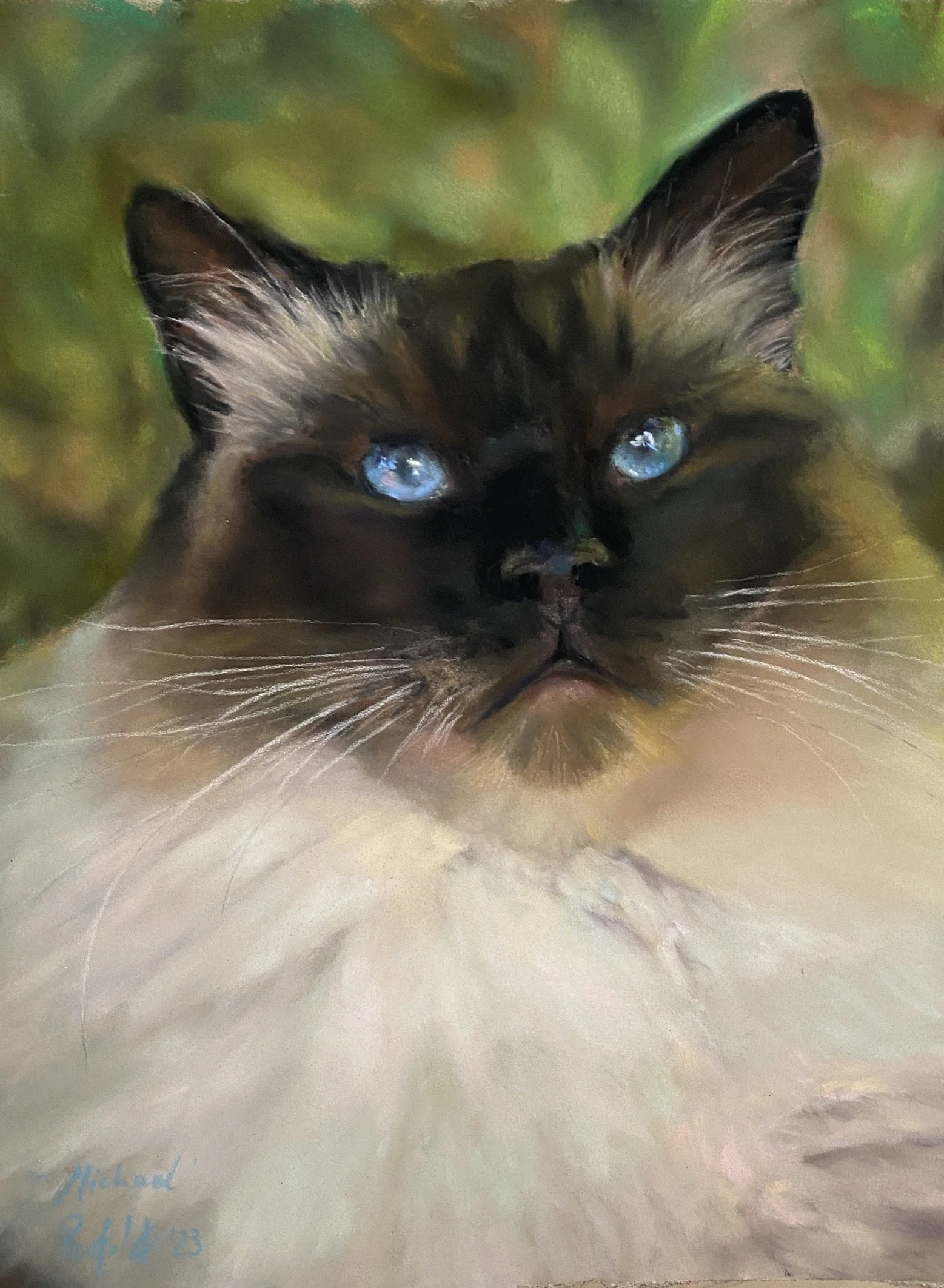 When commissioning a portrait the photograph is critical. Portraits can look flat and without vibrancy when there is not sufficient colour in the fur - every change in the direction of the hair changes the colour of the hair due to the light hitting it differently. I have loaded a video that shows how I layer the pastel to create colour and texture to ensure I get an accurate likeness.